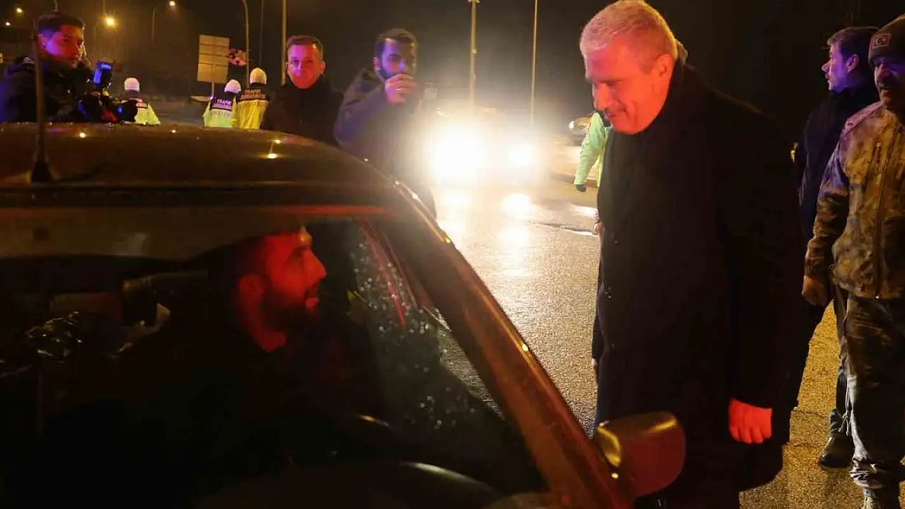 Konya'da 2025'in son dakikalarında şehrin giriş ve çıkış noktalarında kontrol yapan trafik polisleri, sürücüleri durdurarak evraklarını kontrol etti. Kontrol noktasını ziyaret ederek trafik uygulamasına katılan Vali İbrahim Akın, İl Emniyet Müdürü Maksut Yüksek ve beraberindeki protokol mensupları sürücülere hediye vererek yeni yıllarını kutladı.