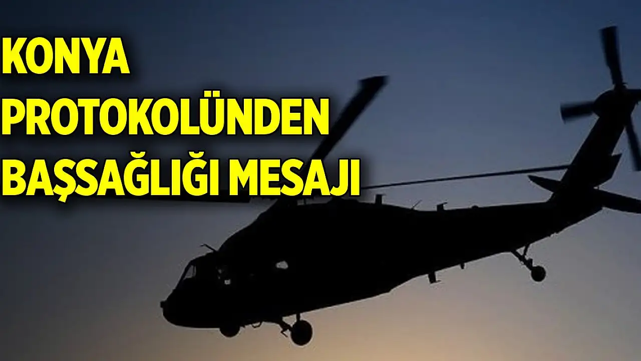 Konya protokolü, Gaziantep'in Nurdağı ilçesi Kartal Köyü mevkiinde kaza kırıma uğraması sonucu 2 pilotun şehit olmasından dolayı resmi sosyal medya hesaplarından başsağlığı mesajı yayımladı.