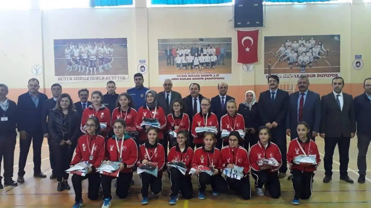 Hüyük Yunus Emre Ortaokulu Konya Kulüpler Arası Midi Kızlar Voleybol Müsabakaları'nda set vermeden il birinciliği, okullararası yıldız kızlarda da il ikincisi oldu.