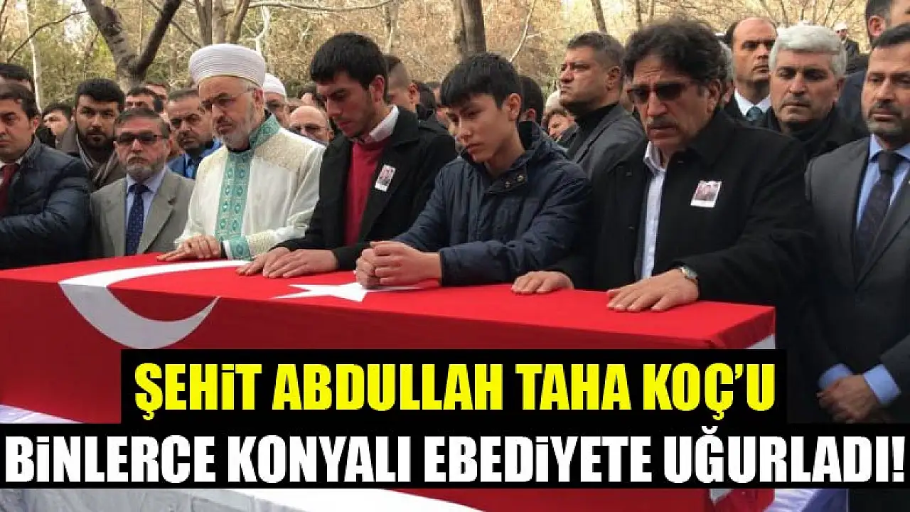 Türk Silahlı Kuvvetleri'nce ( TSK) Afrin'deki terör örgütlerine yönelik sürdürülen 'Zeytin Dalı Harekatı'nda şehit olan Jandarma Astsubay Çavuş Abdullah Taha Koç, tarihi namazgah alanında kılınan cenaze namazının ardından son yolculuğuna uğurlandı. İkindi Namazı öncesi alana getirilen Şehit Abdullah Taha Koç'un başında babası ile birlikte vatandaşlar da uzun süre ayrılmadı. Cenaze Namazı'nı Konya Müftüsü Ali Akpınar kıldırmasıyla birlikte Şehidimiz için vatandaşlardan helallik istendi. Sonrasında askeri törenle şehitliğe getirilen Şehit Abdullah Taha Koç, dualarla defnedildi.