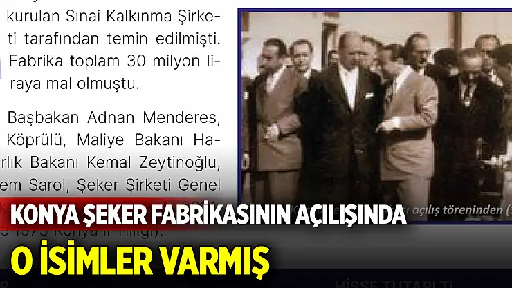 Konya Şeker Fabrikasının açılışında o isimler varmış