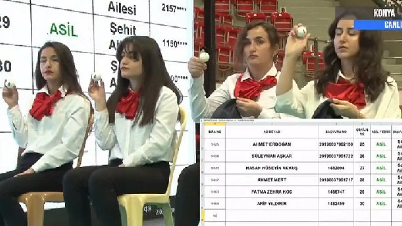 Konya Selçuklu Ardıçlı TOKİ projesinde hak sahiplerinin belirlenmesi için noter huzurunda kura çekilişi devam ediyor.