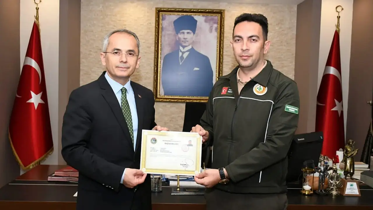 Nisan ayında mantar toplamaya giden vatandaşların Ağaç Tepesi mevkisinde yaktığı ateş nedeniyle çıktığı belirlenen yangına kısa sürede müdahale ederek yangının büyümesini önleyen Orman İşletme Şefi Fatih Ünal ve personeline başarı belgesi verildi.