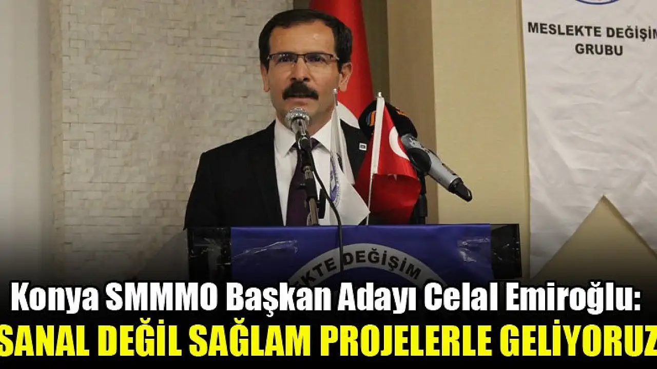 Konya Serbest Muhasebeci Mali Müşavirler Odası Başkan Adayı Celal Emiroğlu, 'Sanal, ütopya projelerle değil daha ayağı yere basan, daha düzgün, sağlam ve sağlıklı projelerle geliyoruz' ifadelerini kullandı.