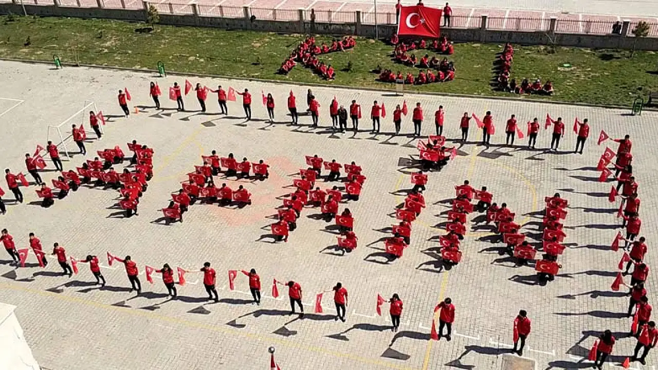Afrin'deki Mehmetçiğimize destek olmak amacıyla okul bahçesinde öğrenciler tarafından kareografi oluşturuldu.