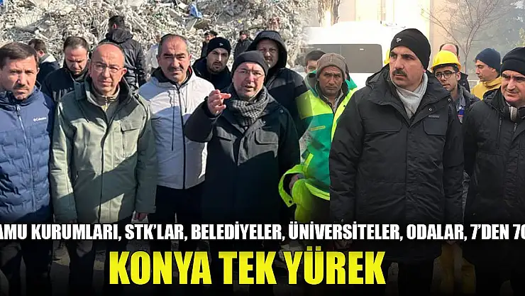 Merkez üssü Kahramanmaraş olan ve toplamda 10 ili etkileyen 7,7 ve 7,6 büyüklüğündeki depremlerin ardından Konya'daki tüm kamu kurum ve kuruluşları, STK'lar, iş ve siyaset dünyası, , öğrenciler, işçiler ve vatandaşlar tek yürek olarak deprem bölgesine yardım ve desteklerini sürdürüyorlar.