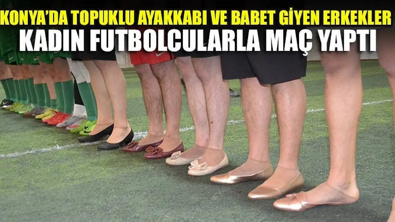 Konya' topuklu ayakkabı ve babet giyen erkekler kadın futbolcularla maç yaptı