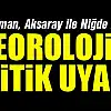 Konya, Karaman, Aksaray ile Niğde için kar ve kısa süreli fırtına uyarısı yapıldı