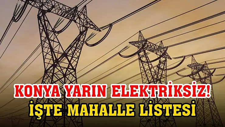 Konya'da yarın Karatay, Selçuklu ve Meram ilçelerinin bazı mahallelerinde elektrik kesintisi yaşanacak. Peki, hangi mahallelerde elektrik olmayacak? İşte detaylar…