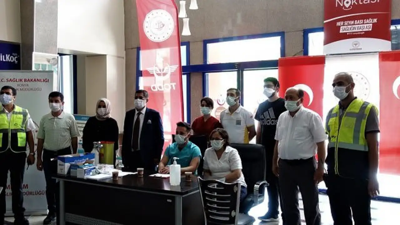 Konya Yüksek Hızlı Tren (YHT) Garı'nda, yeni tip koronavirüs (Kovid-19) salgınıyla mücadele kapsamında aşılama noktası oluşturuldu.
