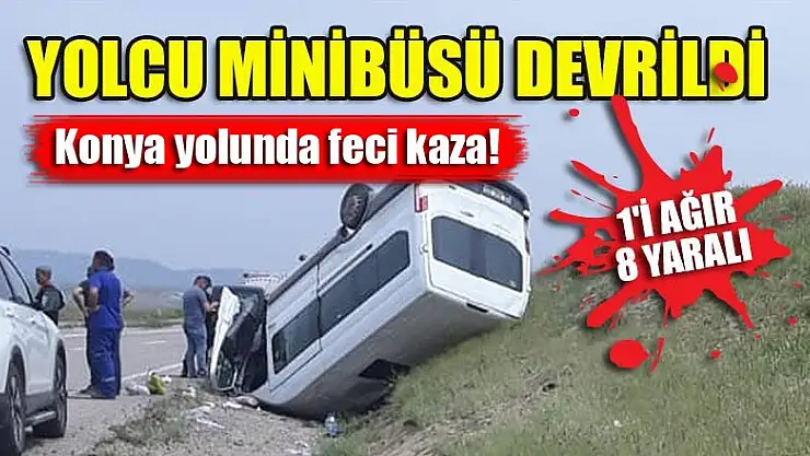 Konya yolunda feci kaza! Minibüs devrildi: 1'i ağır 8 yaralı