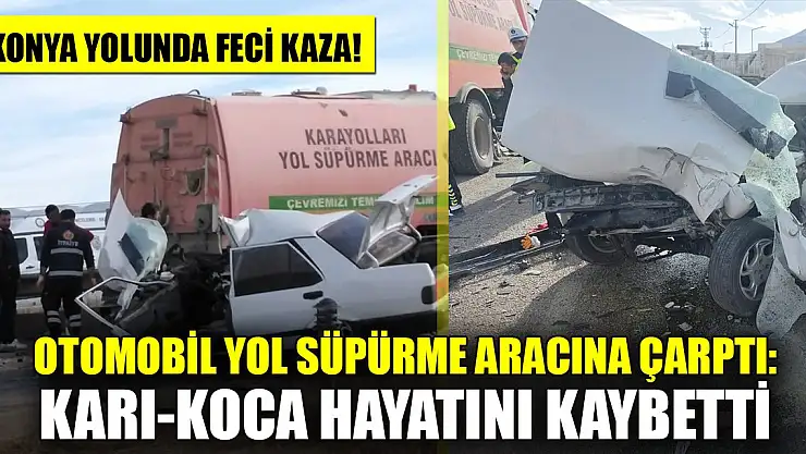Konya yolunda feci kaza! Otomobil yol süpürme aracına çarptı: Karı-koca hayatını kaybetti