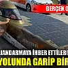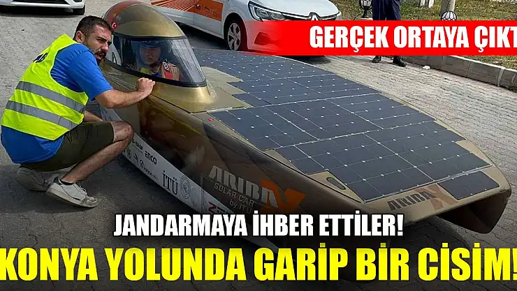 Afyonkarahisar'ın Bolvadin ilçesinde jandarma ekipleri, yapılan 'karayolunda garip bir cisim ilerliyor' ihbarına üzerine harekete geçti. Ekipler söz konusu ihbarda olay yerine gidince ise Konya'da gerçekleştirilen yarışmaya giden 'güneş enerjili arabayla' karşılaşırken, söz konusu aracın patlayan lastiğinin değiştirilip gençlerin yoluna devam etmesine de yardımcı oldular.
