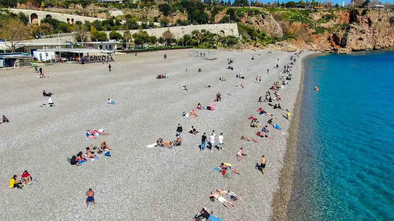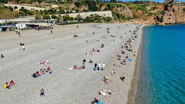 Türkiye'nin doğu illeri soğuk ve karlı hava ile mücadele ederken, turizm kenti Antalya'da sıcaklık 20 dereceleri bularak adeta bahar havası yaşandı. Hafta sonuyla birlikte yerli yabancı birçok kişi sahil ve parklarda yoğunluk oluşturdu. Dünyaca ünlü Konyaaltı Sahili de ziyaretçi akınına uğradı. Deniz suyu sıcaklığının 19 dereceye ulaşmasıyla birlikte birçok kişi Akdeniz'in mavi sularında kulaç attı. Yarın başlayacak olan Ramazan ayı öncesini değerlendirmek isteyenler sahile koştu. Çok sayıda kişi Akdeniz'in serin sularında kulaç atı. Sahildeki yoğunluk dron ile de görüntülendi.