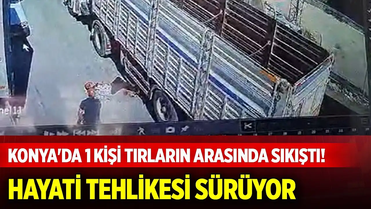 Konya'da 1 kişi tırların arasında sıkıştı! Hayati tehlikesi sürüyor