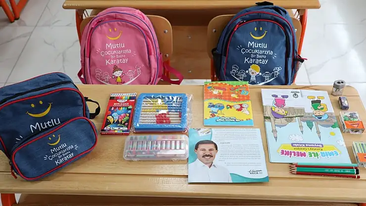 Konya'da Karatay Belediyesince ilkokula başlayan çocuklar için çanta ve kırtasiye desteğinde bulunuldu.