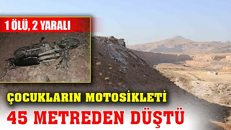 Konya'da 13 yaşındaki 3 çocuğun bindiği motosikletin 45 metrelik uçurumdan yuvarlanması sonucu meydana gelen kazada, çocuklardan biri kaldırıldığı hastanede hayatını kaybetti. Motosiklette bulunan ve hastaneye kaldırılan 2 çocuğun ise hayati tehlikelerinin devam ettiği öğrenildi.