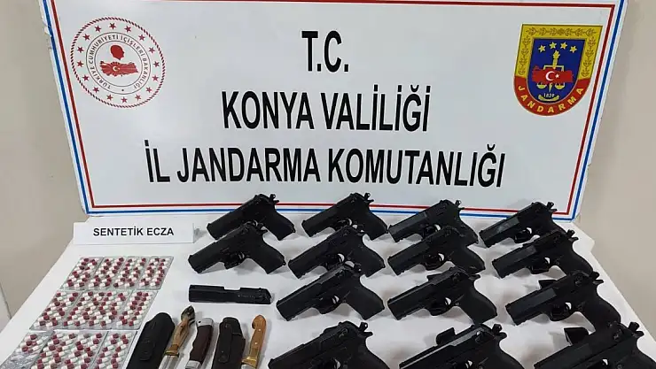 Konya'nın Beyşehir ilçesinde jandarmanın düzenlediği operasyonda 14 ruhsatsız tabanca ele geçirildi.