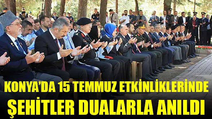 15 Temmuz Demokrasi ve Milli Birlik Günü anma etkinlikleri Konya Şehitliğinin ziyaretiyle başladı. Konya protokolü şehitlerin mezarlarını tek tek ziyaret ederek karanfil bıraktı. Kur'an-ı Kerim tilavetinin ardından şehitler için dua edildi. Bazı şehit aileleri de şehitlerini yalnız bırakmayıp kabirleri başına gelerek dua etti. Konya Valisi Vahdettin Özkan ve beraberindeki protokol üyeleri şehit aileleri ile sohbet etti.