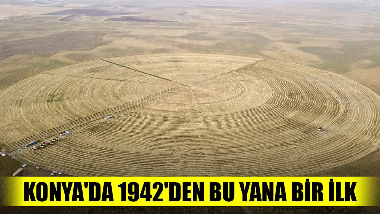 Konya'da hasat zamanı... TİGEM Gözlü Tarım İşletmesi Müdürlüğünde her biri 492 dekarlık hububat ekili daire şeklindeki tarlalarda rekolte beklentinin üzerinde gerçekleşiyor. İşletmenin müdür yardımcısı Ertuğrul Kılınç, 'Bu yıl, işletmemizin kurulduğu 1942'den bu yana en yüksek rekolteyi bekliyoruz.' dedi.