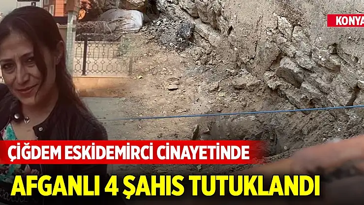 Konya'da yaklaşık 4 aydır kayıp olarak aranan 2 çocuk annesi Çiğdem Eskidemirci'nin (35) öldürülüp cesedinin evin bahçesine gömülmesiyle ilgili gözaltına alınan Afganlı 4 şüpheli tutuklandı.