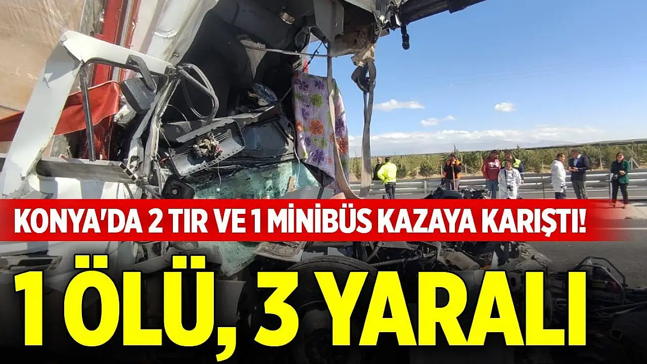 Konya'da 2 tır ile 1 minibüsün karıştığı trafik kazasında 1 kişi hayatını kaybetti, 3 kişi yaralandı.