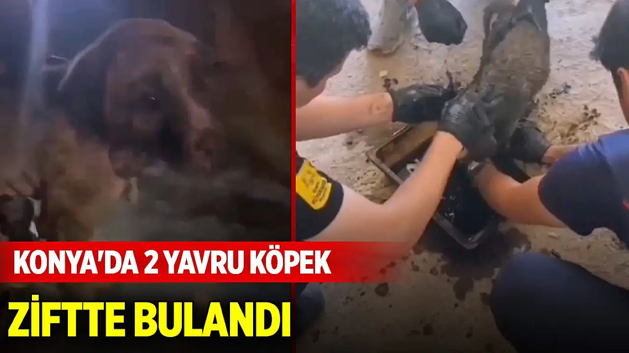 Konya'nın Ilgın ilçesinde zift birikintisinde mahsur kalan 2 yavru köpek itfaiye ekiplerinin uzun uğraşları sonucu çıkarıldı.