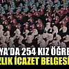 Konuşmaların ardından mehter takımının çaldığı marşlar eşliğinde salona inen 254 kız öğrenci, hafızlık icazet belgelerini aldı.