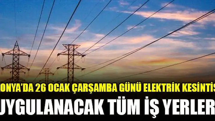 Konya'da 26 Ocak Çarşamba günü elektrik kesintisi uygulanacak tüm iş yerleri