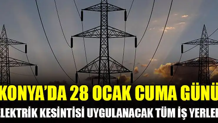 Konya'da 28 Ocak Cuma günü elektrik kesintisi uygulanacak tüm iş yerleri