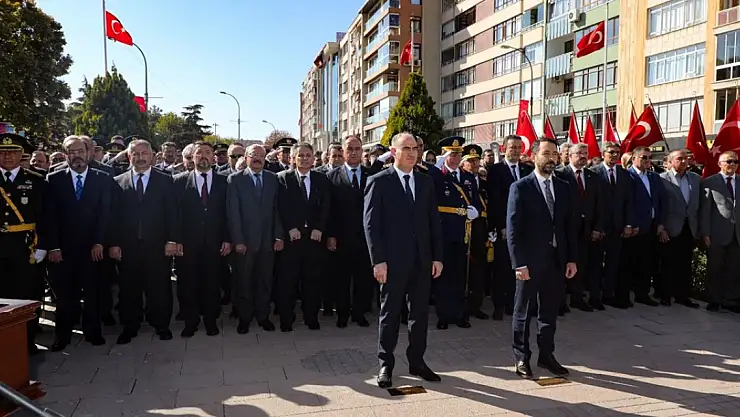 Konya'da tören, Vali Vahdettin Özkan ve Büyükşehir Belediye Başkan Vekili Mustafa Uzbaş'ın, Anıt Meydanı'ndaki Atatürk Anıtı'na çelenk sunmasıyla başladı.
