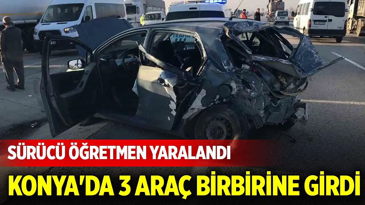 Konya'da 3 aracın karıştığı kazada sürücü öğretmen yaralandı