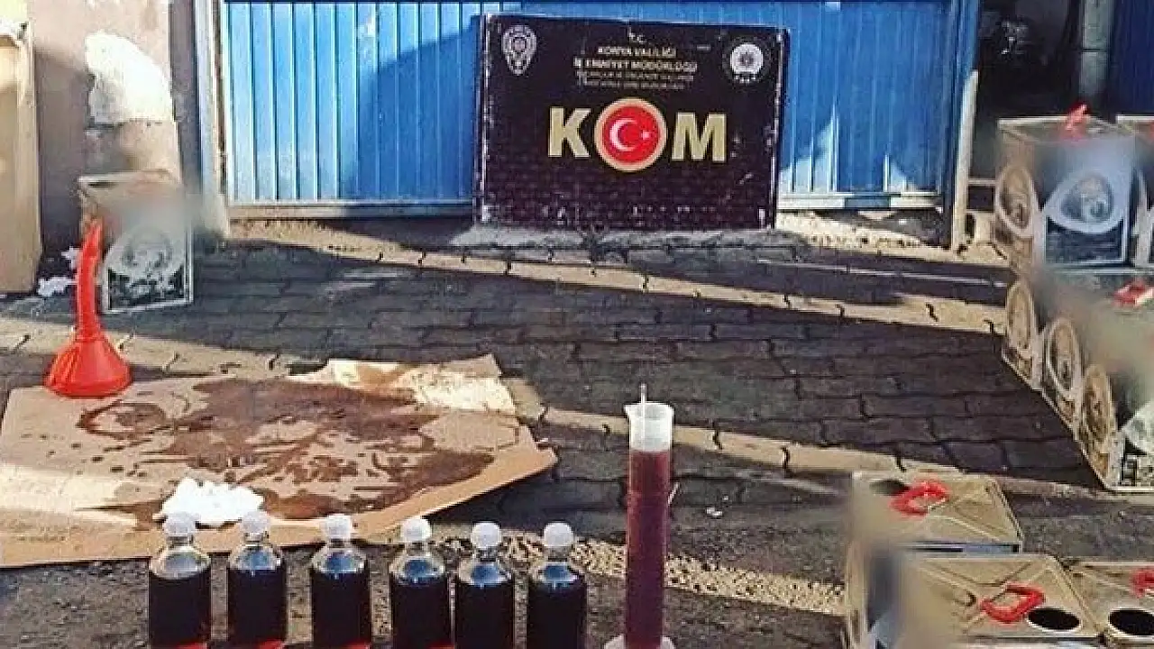 Konya'da polis ekiplerince bir araç ve iş yerinde yapılan aramalarda 3 bin 400 litre kaçak akaryakıt bulundu.
