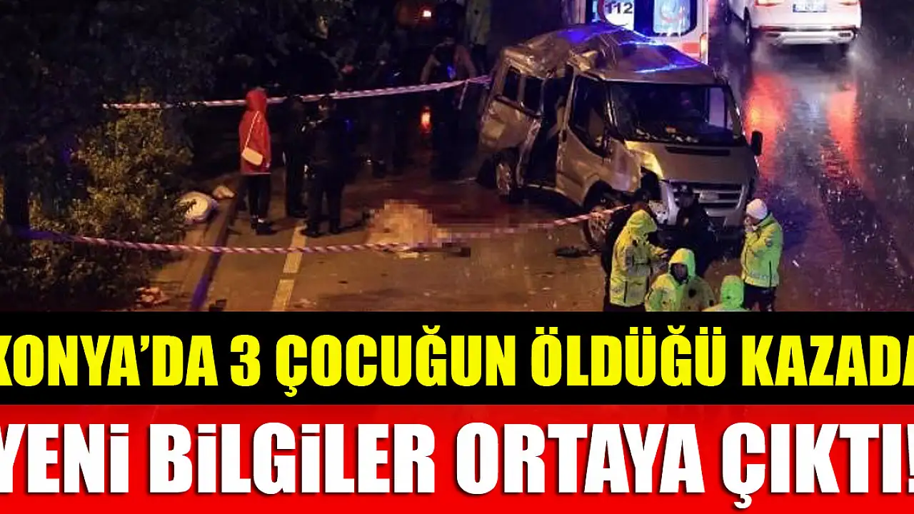 Konya'da 3 çocuğun hayatını kaybettiği feci trafik kazasında yeni bilgiler ortaya çıktı... Ölen çocukların minibüste yolcu olduğu, sürücünün Mehmet Saim A. (41) olduğu ifade edildi.