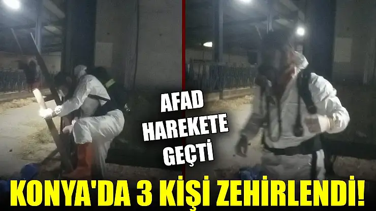 Konya'nda bir çiftlikte meydana gelen kimyasal gaz zehirlenmesinde 3 kişi hastaneye kaldırıldı. Zehirlenme olayıyla ilgili olarak AFAD KBRN uzmanları harekete geçti.