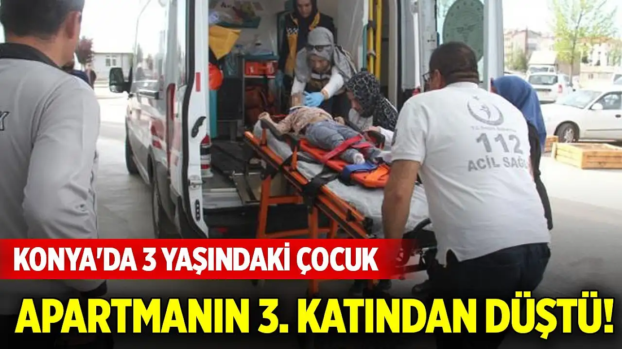 Konya'nın Beyşehir ilçesinde bir apartmanın 3'üncü katından yere düşen çocuk yaralandı.