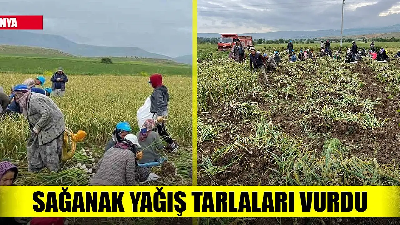 Sarımsak hasadının yapıldığı tarlalarda işçiler yağış nedeni ile araçlara sığındı. Sağanak yağışı sarımsak tarlalarında da hasara yol açtı.