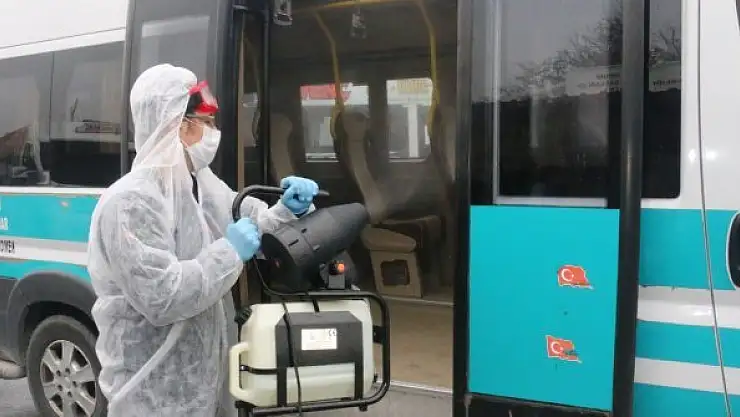 Konya'da şehir merkezinde hizmet veren 530 minibüs, koronavirüse (COVID-19) karşı dezenfekte edilirken, okul servisleri ve taksilerinde de dezenfekte edileceği belirtildi.