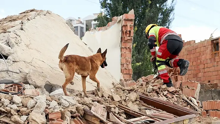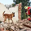 Arama kurtarma köpekleri, enkazda yaralıları aradı.
