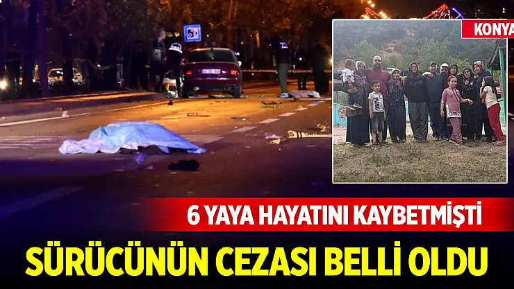 Konya'nın Selçuklu ilçesinde kullandığı otomobille yolun karşısına geçmek isteyen yayalara çarparak, 6 kişinin ölümüne, 4 kişinin de yaralanmasına neden olan sürücüye verilen ceza belli oldu.