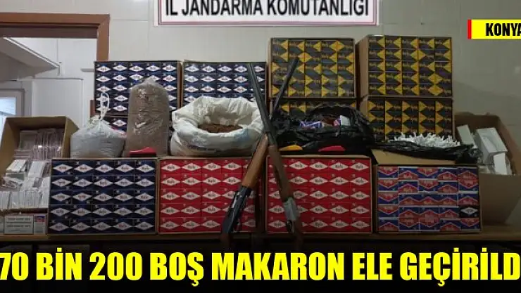 Konya asayiş haberi... Ilgın'da jandarma ekiplerinin iki eve düzenlediği operasyonda, 70 bin 200 adet bandrolsüz boş makaron, 3 bin 55 adet bandrolsüz dolu makaron ve 8,5 kilo tütün ele geçirildi.