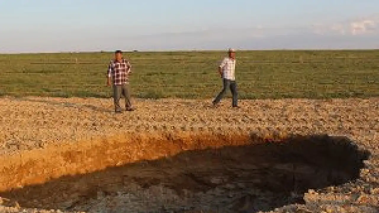 Karapınar ilçesindeki silajlık mısır ekili tarlada 10 metre çapında ve yaklaşık 70 metre derinliğinde obruk oluştu.