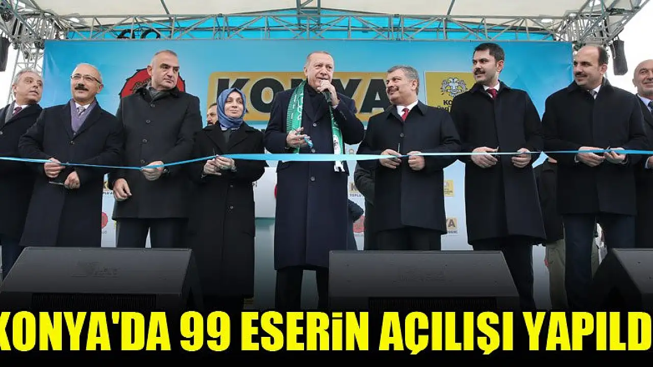 Bakanlıklar ve belediyeler tarafından Konya'ya kazandırılan 99 eser, Cumhurbaşkanı Recep Tayyip Erdoğan'ın da katıldığı toplu açılış töreni ile hizmete sunuldu.