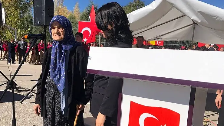 Konya'nın Hüyük ilçesinde, 29 Ekim Cumhuriyet Bayramı kutlamalarına 99 yaşındaki Zeynep Bardakçı'nın okuduğu şiirler damgasını vurdu.