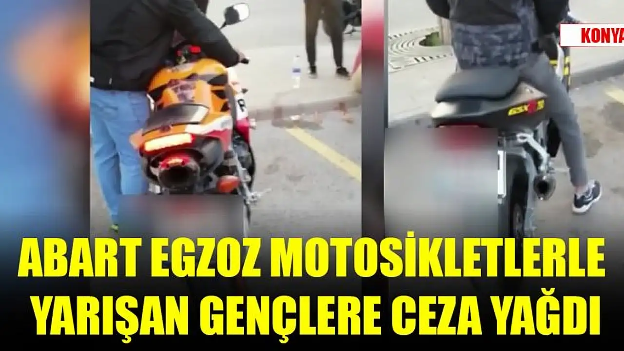 Konya'da yarış motosikletleri ve özel dizayn edilmiş motosikletler ile yarışan ve abart egzoz ile çevreye rahatsızlık veren çok sayıda motosiklet ve sürücüsüne cezai işlem uygulandı. 10 Motosiklet de trafikten men edildi.