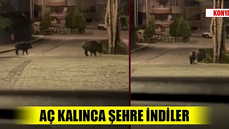 Konya'nın Akşehir ilçesinde aç kalan domuzlar şehre inerek yiyecek aradı.