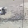 Konya'da sokağa çıkma yasağı sonrası boşalan meydanda aç kalan güvercinleri polis beslendi.