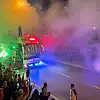 Yol kenarında sıralanan gençler Erdoğan'ı meşalelerle karşıladı.