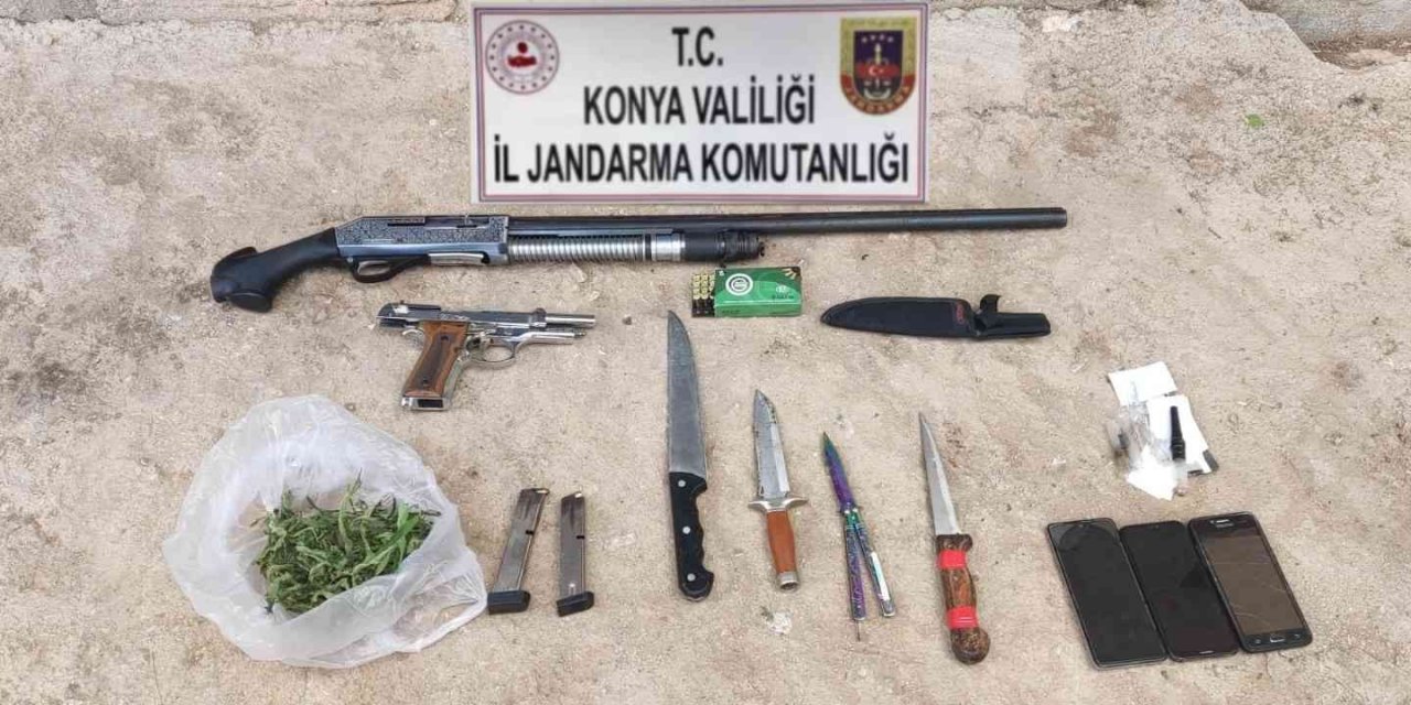Edinilen bilgiye göre, Konya İl Jandarma Komutanlığı ekiplerince yapılan istihbari çalışmalar neticesinde Selçuklu ilçesi Sızma Mahallesi'nde kasten adam öldürme suçundan 36 yıl hapis cezası bulunan C.B.'nin bir evde saklandığı bilgisine ulaşıldı. Adrese yapılan operasyonda C.B. yakalanarak gözaltına alındı. Evde yapılan arama ise 10 gram kubar esrar, 1 adet kuru sıkı tabanca, 1 adet ruhsatsız av tüfeği, 4 adet esrar içme aparatı, 3 adet av bıçağı, 1 adet kelebek bıçak ele geçirildi.