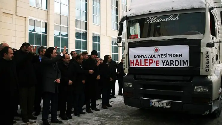 Konya'da adliye çalışanlarının başlattığı 'Halep'e acil insani yardım' adıyla başlatılan kampanyada toplanan battaniye, çocuk bezi, kıyafet ve gıdadan oluşan bir tır yardım malzemesi Suriye'ye gönderilmek üzere yola çıktı.